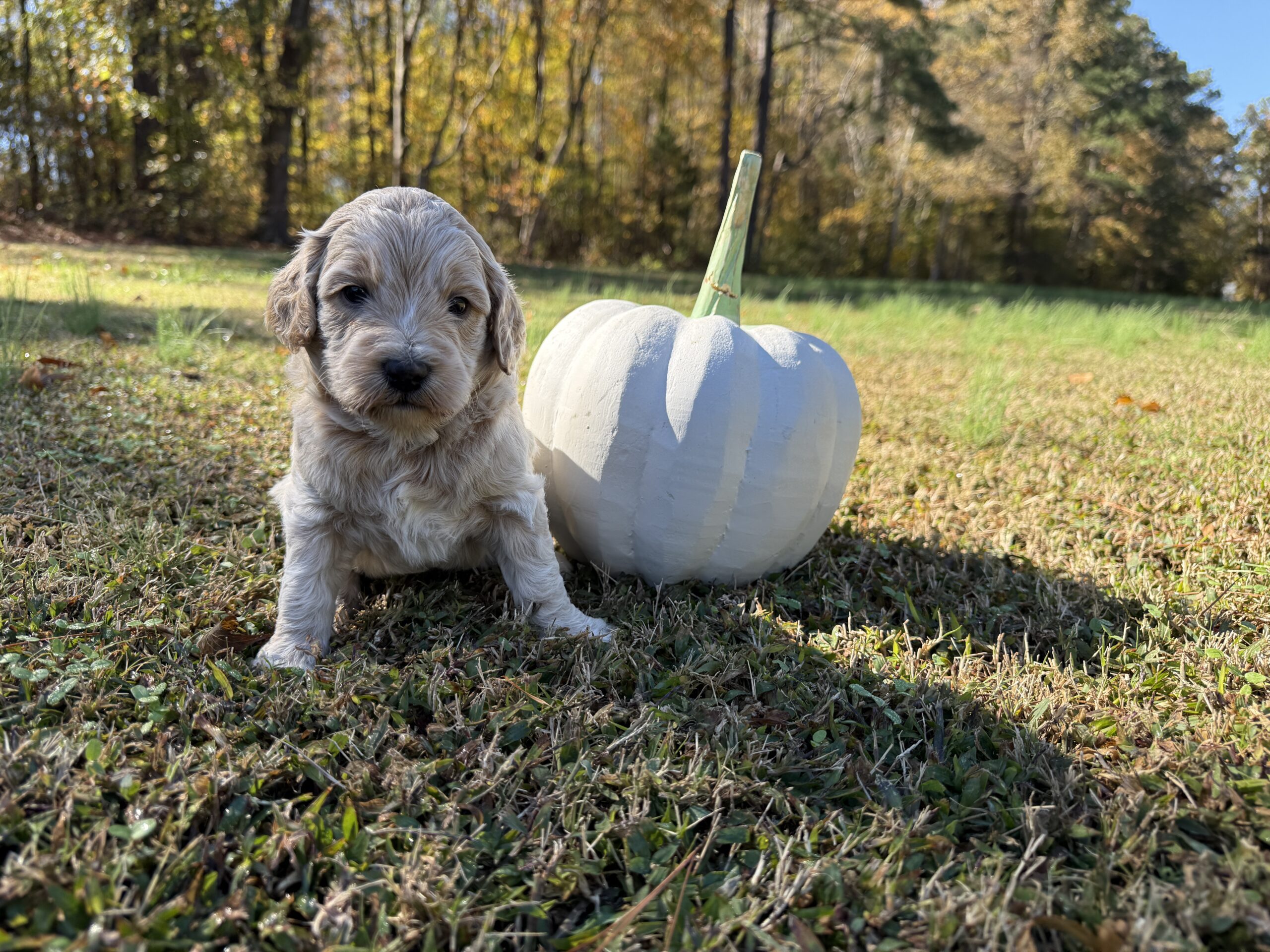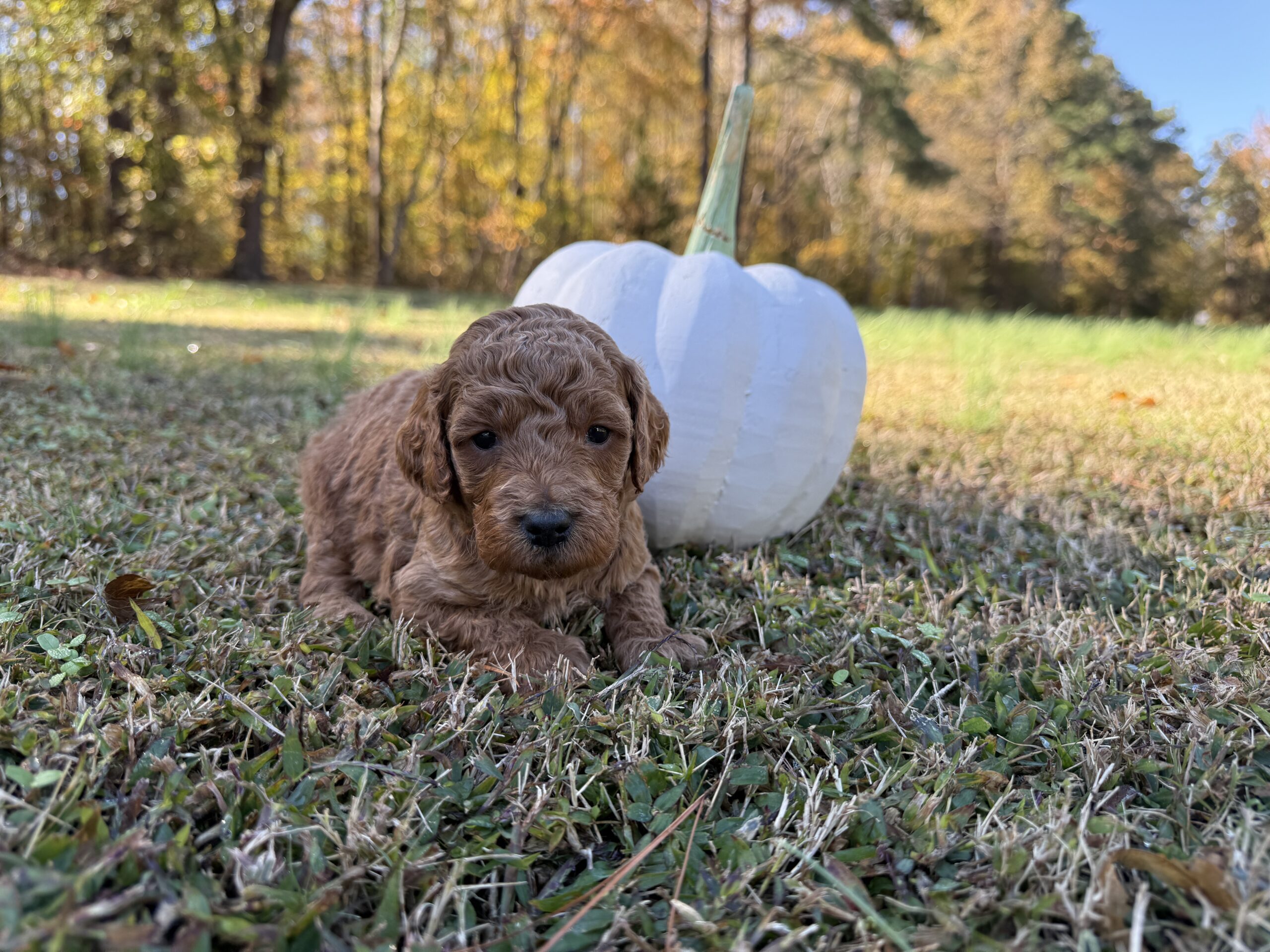 Myrtle’s Medium F1B Imperial Red, Caramel Cream and White  Puppies