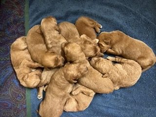 Ramona’s F2 Standard Imperial Red Goldendoodle Puppies Born January 27, 2022 8 Males and 2 Females PUPPIES AVAILABLE View Upcoming Litters